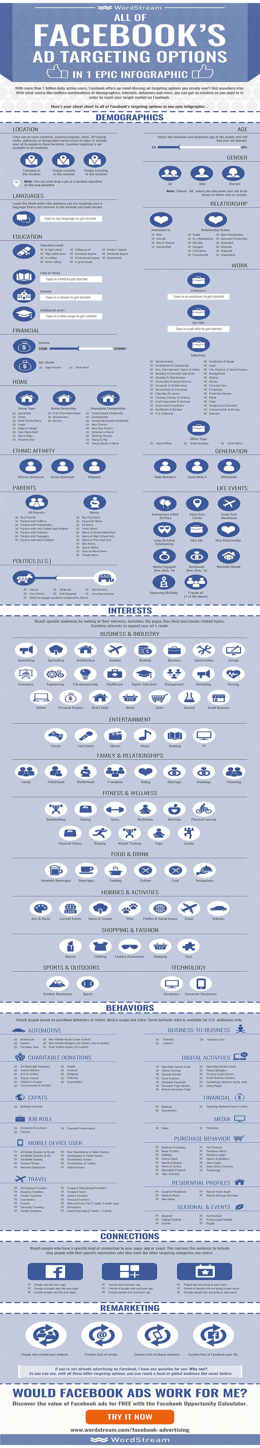 Let’s take a look at all the different possibilities that Facebook offers for building a well-targeted audience. Check out the diagram below and you can really see exactly how powerful Facebook behavioural targeting can be: